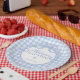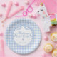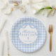 Blue Gingham Coquette Bow Baptism Paper Plate