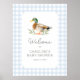Welcome friends and family to your baby shower with this blue gingham duck themed welcome sign.