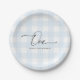 Blue Gingham First Birthday Paper Plates