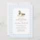 Invite friends and family to share in the joy of your little one's arrival with this elegant blue gingham duck baby shower invitation.