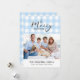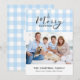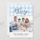 Classic light blue gingham with Merry Christmas greeting. Space for 1 horizontal photo and personal message on the front, and the year on the matching back side.