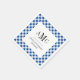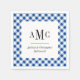 A pattern of classic royal blue gingham plaid frames a traditional three letter monogram on this personalised, paper cocktail napkin. Easily edit all text and you can even change the background colour.