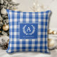 Elegant & Rustic Blue Gingham Monogram Crest Throw Pillow.