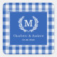 Custom Monogram Crest Blue Square Sticker Gingham Pattern Design - 6 colours.