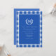 Blue Gingham Monogram Crest Invitation