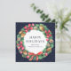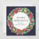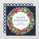 Blue Gingham Plaid Holly Berries Wreath Business Holiday Card