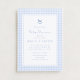 A charming blue gingham nursery note card for a baby boy, featuring a delicate rocking horse illustration and customisable text. Perfect for thank-you notes, personal correspondence, or nursery stationery, this timeless design combines a classic blue check pattern with elegant details. A beautiful keepsake and a thoughtful way to send warm messages to loved ones.