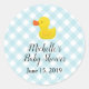 Blue Gingham Rubber Duckie Baby Shower Classic Round Sticker