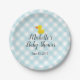 Blue Gingham Rubber Duckie Baby Shower Paper Plate