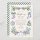 A soft pastel holiday invitation featuring watercolor blue gingham stockings, frosted pine sprigs, and elegant bows. Perfect for a cosy winter gathering or modern Christmas celebration, this design blends cottagecore charm with a fresh, timeless palette of icy blue and soft greenery.