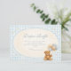 Soft, sweet, and timeless, this teddy bear baby shower design features a charming storybook bear holding a delicate balloon beneath a scalloped heirloom frame. The warm neutral palette of cream, soft blue, and gentle beige creates a cozy nursery-inspired aesthetic that feels both classic and elevated. Subtle gingham details and tiny star accents add a touch of vintage charm without overwhelming the layout. Perfect for a baby boy shower or a neutral celebration with a traditional, heartfelt feel.