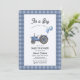 Blue Gingham Tractor Balloon Baby Shower Invitation