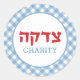 Blue Gingham Tzedakah Pushka Charity Box Label