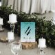 This trendy glitter table number card has faux glitter on the front and back along with the table number and personalisation. Use the template form to add your information. The "Customise Further" feature can be used to change the font and the text layout.