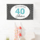 Elegant 40 and fabulous personalised 40th birthday party banner, the words 40 and sassy are in faux turquoise blue glitter and black. The background is a black and white geometric pattern. Perfect for your 40th birthday celebration. You can easily customise this banner with your name. If you need any help or matching products please contact us through our store. We're happy to help you make your 40th birthday party a fabulous event!