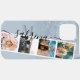 Blue glitter 4 photo grid collage name monogram Case-Mate iPhone case