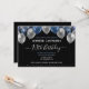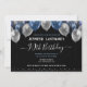 Elegant faux silver and blue glitter balloons on the top border. All text is adjustable and easy to change for your own party needs. Great elegant save the date birthday party template design. any year, age can be changed. Elegant modern stylish typography