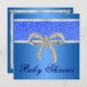 Blue Glitter Diamond Bow Baby Shower Invitation