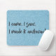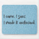 Add an amusing touch to your home office or workspace with a Blue Glitter "I made it awkward" Mousepad. Mousepad design features the text "I came. I saw. I made it awkward." in a handwritten font against a bright glitter blue background. Additional gift items available with this design as well as a variety of colours.