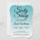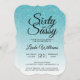 Celebrate turning 60 in style with this modern 60th birthday design on a turquoise blue glitter ombre background, a chic 60th birthday invitation you can simply personalise and send out for your sixtieth birthday party celebration. The words sixty and sassy are set using modern script. If you need any help or matching products, please contact us through our store. We're happy to help you make your 60th birthday party a fabulous event!