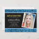 Blue Glitter Photo Graduation Party Invitation features the words "Graduation Party" in a fun sans serif font in faux gold foil with a blue faux glitter top and bottom and a black centre background. Invitation has a blue, black and faux gold foil stripes pattern back side.