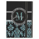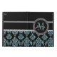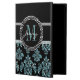 Blue Glitter Printed, Black Damask Personalised Cover For iPad Air