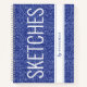 Royal blue sparkly glitter patterned personalised sketchbook notebook for art and drawing with a large print title of "Sketches by... and your name" printed on the cover in a modern simple and bold font.