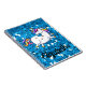 This pretty blue notebook features a chubby little unicorn, leaping for joy over a bed of blue glitter. She has golden hooves and matching gold horn, rainbow coloured hair and tail, gold stars on her body, all on a sparkling blue, shiny background. Please note this cute unicorn notebook can be personalised with your own name.