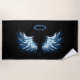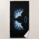 Blue Glowing Angel Wings on black background Beach Towel