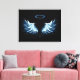 Blue Glowing Angel Wings on black background Canvas Print