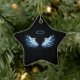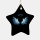 Blue Glowing Angel Wings on black background Ceramic Tree Decoration