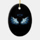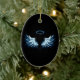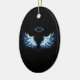 Blue Glowing Angel Wings on black background Ceramic Tree Decoration