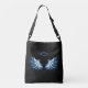 Blue Glowing Angel Wings on black background Crossbody Bag