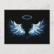 Blue Glowing Angel Wings on black background Holiday Postcard