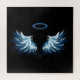 Blue Glowing Angel Wings on black background Jigsaw Puzzle