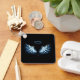 Light, artistic, blue angel wings on a black background. Angel wings.