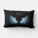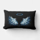 Blue Glowing Angel Wings on black background Lumbar Cushion