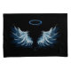 Light, artistic, blue angel wings on a black background. Angel wings.