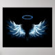 Blue Glowing Angel Wings on black background Poster