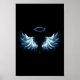 Blue Glowing Angel Wings on black background Poster