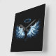 Blue Glowing Angel Wings on black background Square Wall Clock