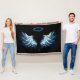 Light, artistic, blue angel wings on a black background. Angel wings.