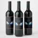 Blue Glowing Angel Wings on black background Wine Label