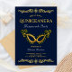 Blue Gold 15th Birthday Masquerade Quinceanera Invitation