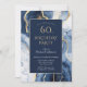 Blue Gold Agate 60th Birthday Invitation. Celebrate a stylish 60th birthday party with this elegant modern design. Featuring stunning blue and gold tones, marble geode patterns, and watercolor alcohol ink details, it offers a sophisticated touch for an adult milestone celebration. The sleek layout and refined aesthetic perfectly highlight sixty years of cherished memories, creating a luxurious invitation for an unforgettable celebration.