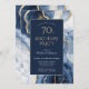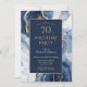 Blue Gold Agate 70th Birthday Invitation. Celebrate a stylish 70th birthday party with this elegant modern design. Featuring stunning blue and gold tones, marble geode patterns, and watercolor alcohol ink details, it offers a sophisticated touch for an adult milestone celebration. The sleek layout and refined aesthetic perfectly highlight seventy years of cherished memories, creating a luxurious invitation for an unforgettable celebration.