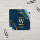 Blue & Gold Agate Geode Glitter Monogram Marble Square Business Card