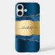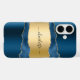 Blue and faux gold agate, marble stone print as background Personalise and add your name. The name is written with a modern hand lettered style script.