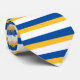 Stand out and look classy at the same time with this blue, gold, and white-striped tie. Wear it to your next tailgating event!