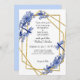 Blue Gold Asian Dragonfly China Flowers Watercolor Invitation